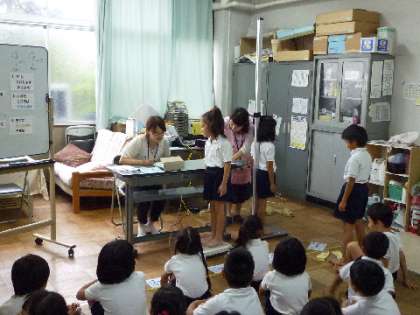 昨日の2年生に続き、今日は1年生の二計測でした。宮本先生から、簡単なけがの応急処置の方法や、保健室に来る際のルールなどについてお話もありました。