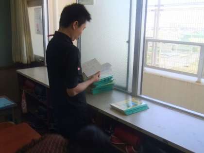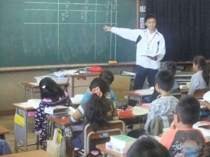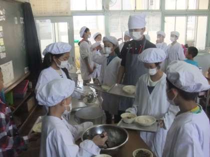 授業をしたり、ノートを見たり、休み時間に子どもと遊んだり、給食を食べたり。