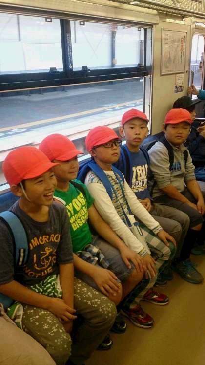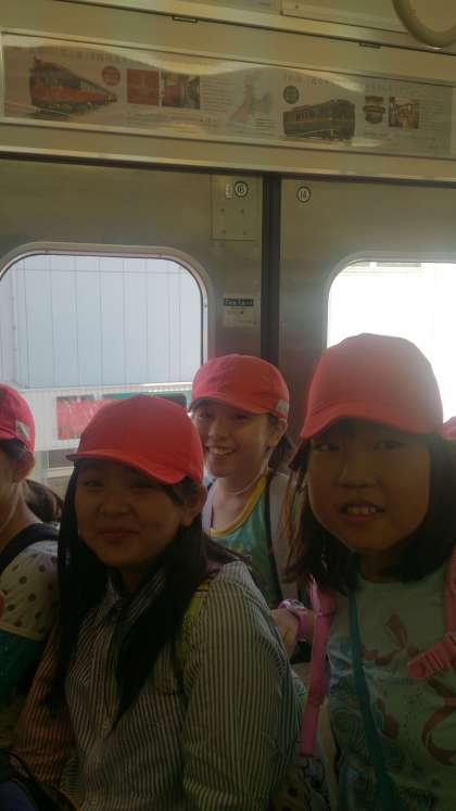 東岸和田駅から新今宮駅まで乗った快速電車は満員でした。降車後、「暑かった。」「動けなくて大変だった。」と子どもたちは言っていました。ですが、みんな静かに乗車マナーを守っていました。上の写真は快速電車の次に乗った環状線内での様子です。先ほどの快速電車ほどは混んでいなかったので、子どもたちはホッとしていました。