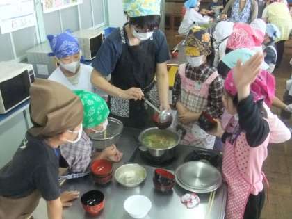 今日は、3組がその野菜を使ったみそ汁を作って食べました。