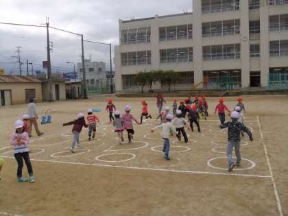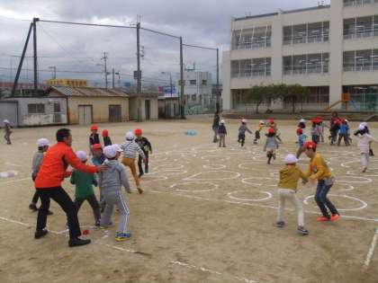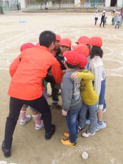 「宝島」という遊びです。みんなで作戦を考え、協力して頑張りました。