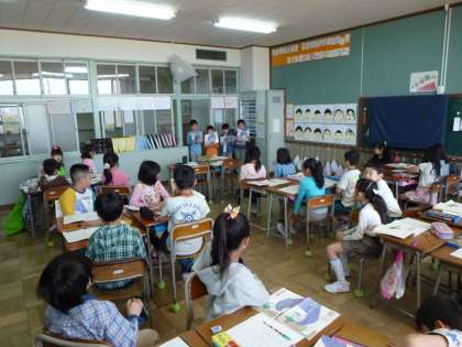 「きつつきの商売」というお話を、班で工夫して音読しました。