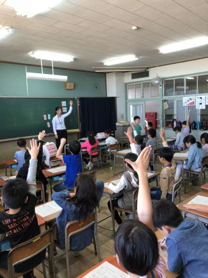 3年2組に教育実習に来ている先生が研究授業を行いました。国語の「へんとつくり」について学習しました。