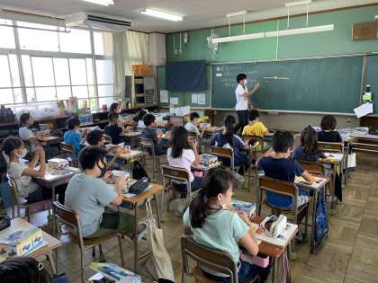 4年生は、理科の時間に、電流のはたらきについて学習しています。モーターと乾電池をつなぐ回路をつくりました。