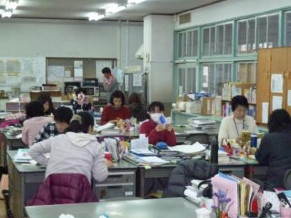 また、今週は1年生の生活科のとりくみで「しごと名人」の発表会をしています。家庭科室で「卵焼きをつくる」「サラダをつくる」「洗い物をする」教室では「おふろそうじ」「テーブルふき」「げんかんそうじ」などを発表しました。