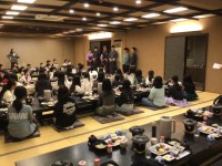 入館式をして、ホテルの方にご挨拶をしました。待ちに待った夕食です。いただきます。