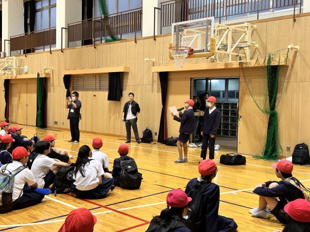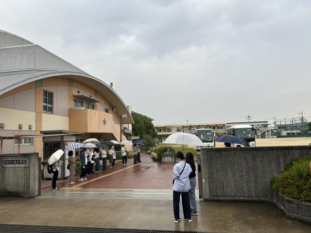学校では、たくさんの先生方が見送る中笑顔で、予定どおり広島へ向けて出発しました。