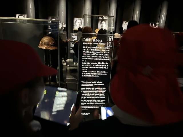 子どもたちは、展示を一つひとつ丁寧に読み、被爆者の声や遺品などの一つ一つの展示を心にとどめていました。