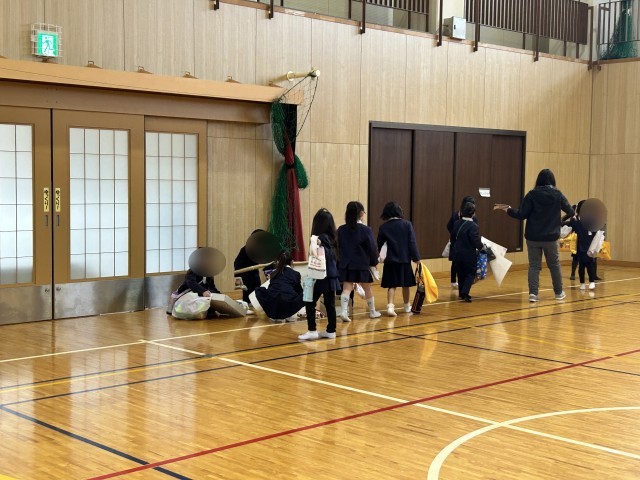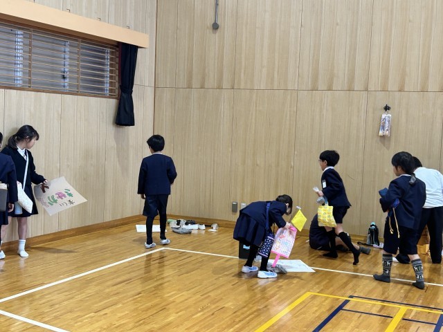 体育館へ準備しにいく2年生の子どもたちの顔は自信にあふれた頼もしい表情でした。