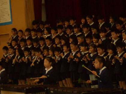 合奏「汽車にのって」は、三年生になって初めてのリコーダー演奏でしたが、これまでの練習の成果が出でいました。体育館に美しいきれいな音色が響きわたっていました。素敵な演奏でした。