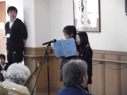 4年生が澤にある延寿会「ケアハウスふれあい二色」を訪問しました。今年は3日に分けて行きます。