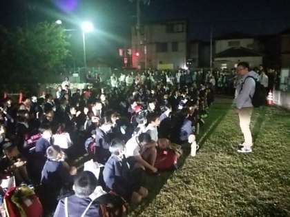 6時すぎ、バスは無事に西小に到着しました。たくさんの保護者のみなさまのお出迎えの中、解散式となりました。