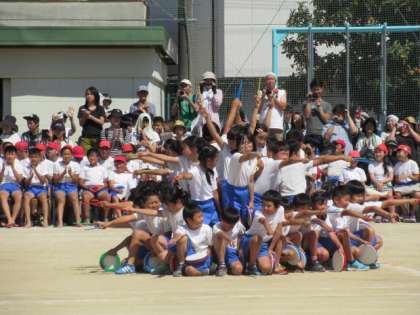 4年生は沖縄民謡「エイサー」を行いましたが。今年は新しい曲に挑戦しました。沖縄の空気がより伝わってくるような音楽とともに、独特の間を取りながら、キレの良い動きを表現できていたと思います。とてもかっこよかったです!