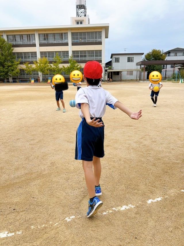 3年生の体育では、ポートボールを学習しています。今日は2人ペアになって、いろいろなパスの練習をしました。