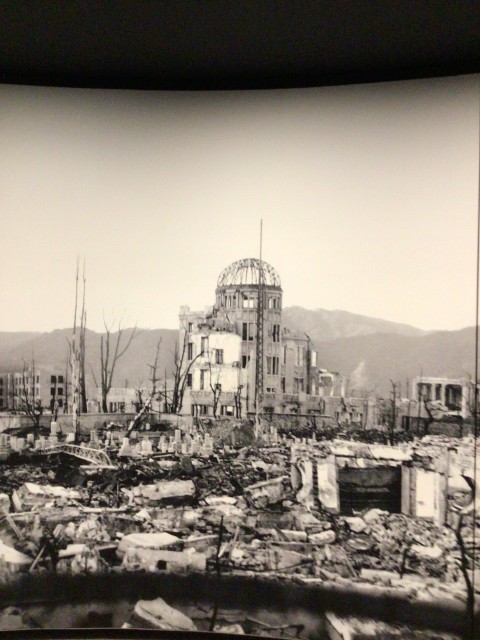 広島平和記念資料館の見学です。みんな真剣に展示品やパネルを見てメモを取っています。