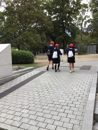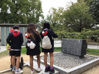 碑めぐりが始まりました。子どもたちは班別で碑をめぐっています。