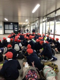 宮島行きのフェリーに乗船しました。いよいよ修学旅行2日目のスタートです。