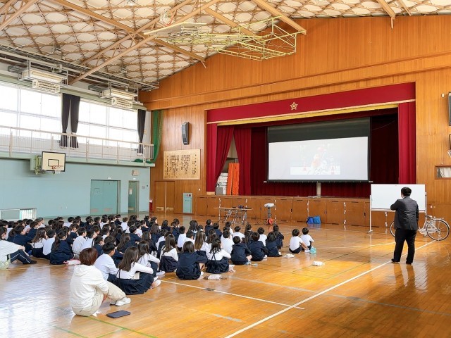 自転車の乗り方や道路での歩き方などについて、実際に歩いたり、動画を見たりして学習しました。