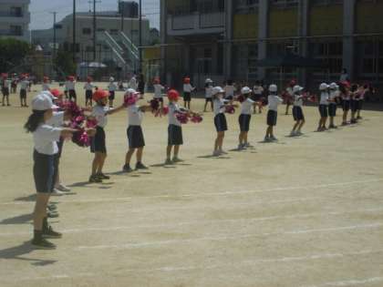 手に持ったポンポンが、今日の強い日差しにキラキラと輝き、とてもきれいでした。ダンスの動きもすっかり覚えて、笑顔で踊れる余裕が出てきました。