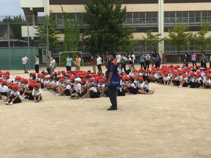 月曜日に、火災避難訓練を実施しました。緊急放送と先生の指示をしっかりと聞き、全員がすばやく運動場に避難できました。