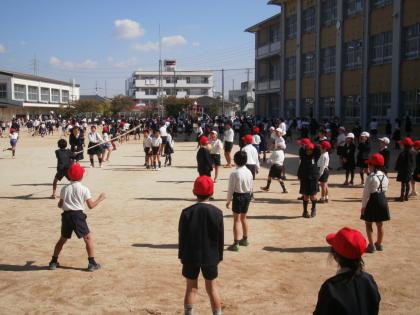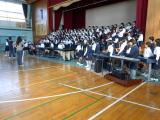 2年生 体育館で全クラスそろって唄のお稽古をしていました。
