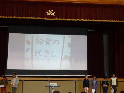 1月21日(木)、児童朝礼で、給食保健委員会の発表がありました。