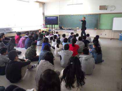 4月27日(木)、6年生は貝塚市教育センターの上西さんに来ていただき、話を聞かせていただきました。