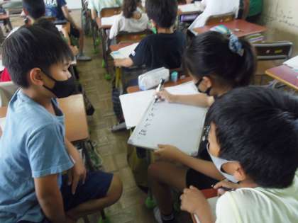 そして、各班で話し合ったことが書かれたホワイトボードを見ながら、みんなで考えました。
