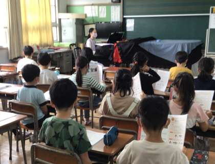 4月19日(火)1時限目、音楽室で音楽の先生と学習しました。