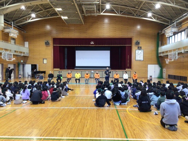 2月25日(火)、子どもたちの登校の見守りを毎日してくださっている見守り隊の方々に感謝の気持ちを伝える「ありがとう集会」を行いました。代表委員会の子どもたちが司会進行をしてくれました。見守り隊の方々の自己紹介では、見守りをしていく中で感じたこと、伝えたいことをお話してくださいました。