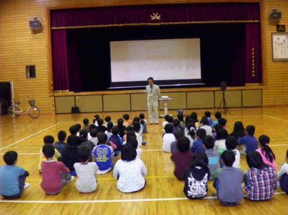4月30日(火)、1年生は交通安全指導がありました。体育館で、交通ルールを学習...