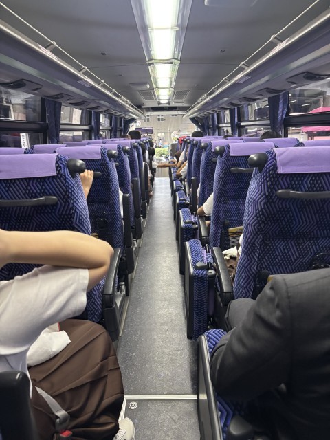 修学旅行2日目 新大阪駅に到着 バスに乗車し新大阪を出ました🚌 16:30出発の予定でしたが25分出発、少しだけ早く出ました。