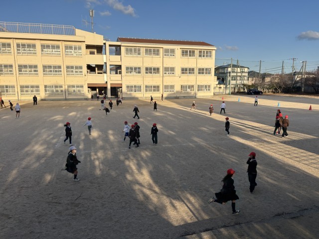 三学期最初の朝遊び! 本日は「バナナおに」をしました。子どもたちは元気いっぱい走ってました!