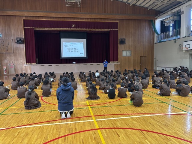2月9日児童集会 地震避難訓練についての事前学習を行いました