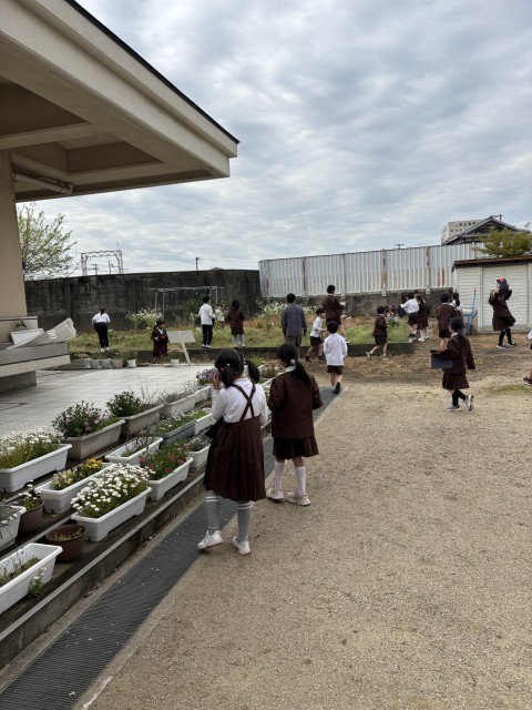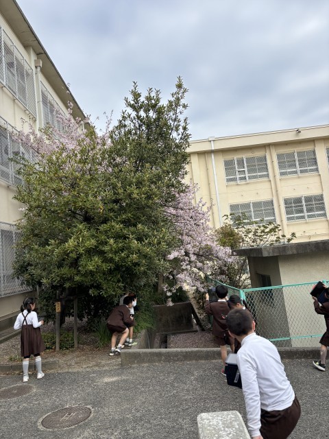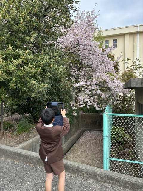 今日の2年生は、iPadを片手に校内探検へ出発! 校庭や畑など、学校の中にある「春」をたくさん見つけに行きました。
