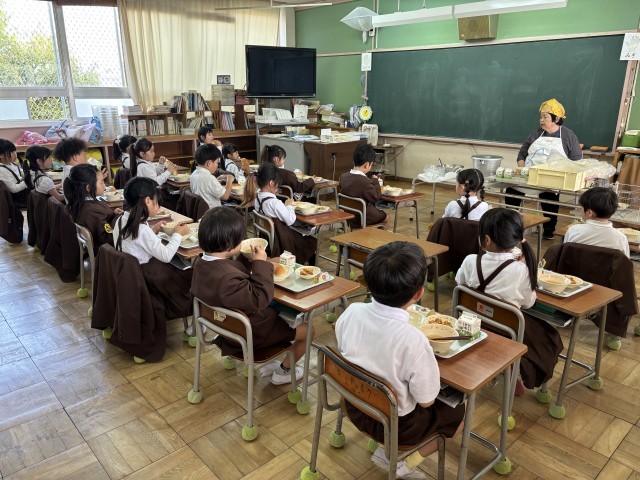 初めて学校のパンを食べた1年生からは、「ふわふわしてる!」「おいしい!」との声が上がっていました。