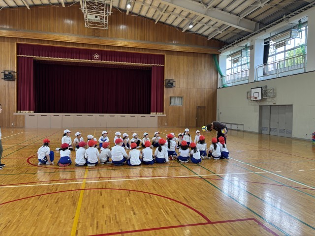 その後は、みんなが楽しみにしていたドッジボール。 試合の前に、ボランティアの先生から「公式のルール」を教えてもらうと、子どもたちからは「えっ!そうなの!?」「知らなかったー!」と驚きの声が上がりました。普段の遊びとは少し違う本格的なルールに、みんな興味津々です。