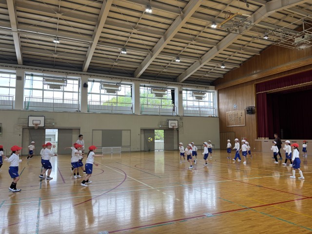 まずは、体育館の中に作られた「特設サーキット」に挑戦です。 いろいろなコースを組み合わせて、跳んだり走ったり、全身を使ってしっかり体を動かしました。次から次へと現れる課題をクリアしていくたびに、子どもたちの活気ある声が響きました。