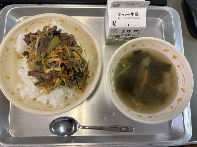 お肉と野菜たっぷりのピビンバを、みんなモリモリと食べてくれていました。美味しい給食で、心も体もエネルギー満タンになりました。
