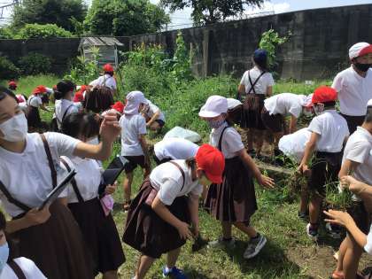 梅雨も明けて中庭の草がかなり茂ってきたので、生き物ボランティア委員会の提案で各学年でゴミ袋半分草を集める「草抜き大会」を行いました。みんなの力を合わせると、それぞれの学年のゴミ袋に、どんどん草が集まっていき、みんなで草抜きをするとすごいなあと感じました。結果どの学年が優勝したのでしょうか?楽しみです。