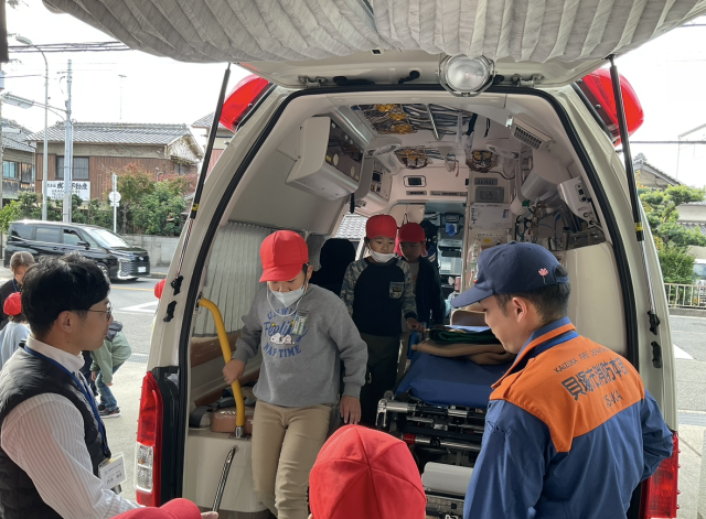 消防署で働く方たちからお話を聞いたり、実際に消防車の見学や救急車の中に乗せてもらい見学させてもらいました。3年生の子どもたちは消防署で働く皆さんにたくさんの質問をして、お仕事の苦労ややりがいを聞かせてもらいました。ありがとうございました。