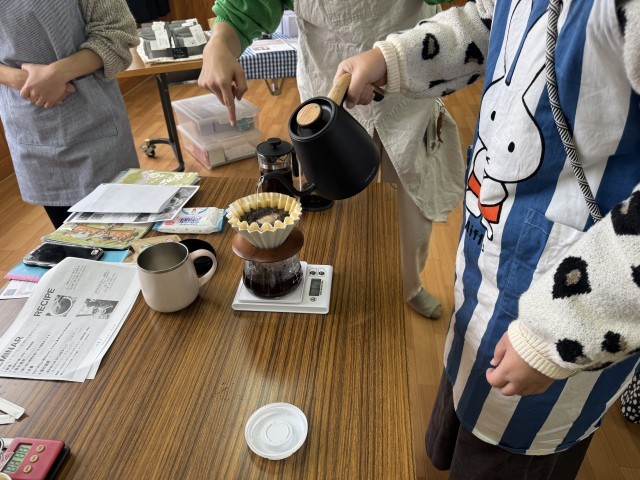 コーヒー豆を挽き、ドリッパーでゆっくりとお湯を注いでコーヒーの香りとそのゆったりとした時間を味わうおいしいコーヒーの淹れ方講座が行われました。産地によって味や香りが違うことを体験したり、コーヒーに合うスイーツを味わったりして、美味しくて楽しい時間を過ごすことができました。たまねぎクラブは、家庭教育学級とも言い、PTA活動の一つです。保護者の皆さまならだれでも入れます。良かったら参加してみてください。