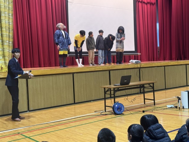 5・6年生は、関西自動車学院のみなさんから自転車の事故やその後に起きることについて詳しく教えてもらいました。自転車に乗る時に、心がけることとして、「~かもしれない。」と考える想像力が必要なことを教わりました。また、6年生の代表3人が、劇に参加させてもらい、自転車に乗っている側、歩道を歩いている側に分かれて、気を付けるポイントを一緒に考えました。関西自動車学院のみなさま、安全、安心のためにご協力いただき、ありがとうございました。