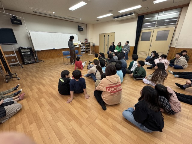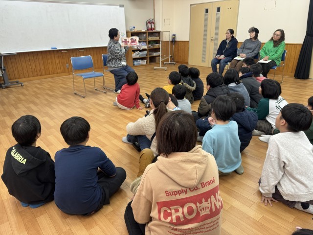 ひまわり学級のみんなが集まる時間に、読み聞かせグループのレインボ-ルームのみなさんが来てくれました。楽しい絵本を読んでくれたり、一緒にリズムに合わせて手拍子をしたり、質問に答えたりしました。みんな集中してお話や説明を聞いていました。楽しい時間を本当にありがとうございました。