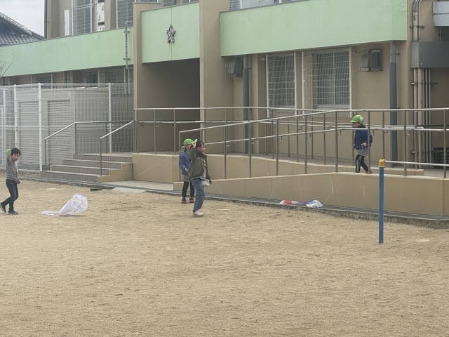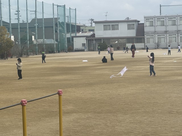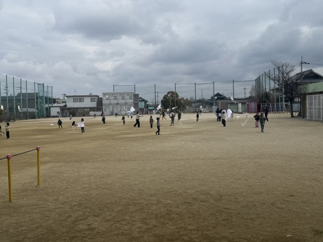 1年 生活科で冬の遊び「たこあげ」をしました。