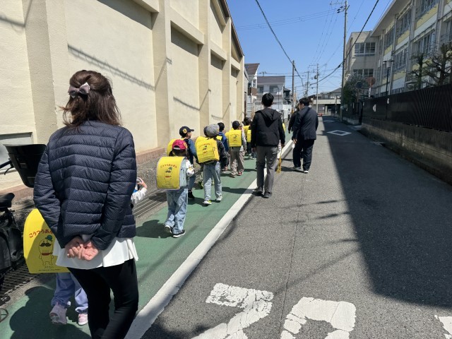 1年生は集団で下校をして、自分たちで帰られるように頑張っています。