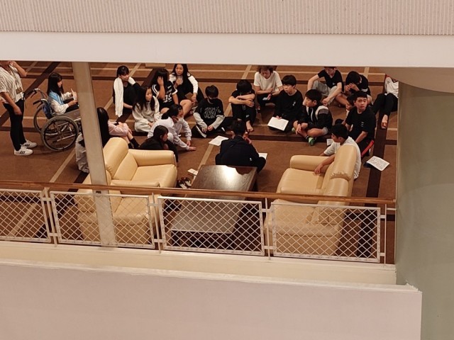 お風呂の後は、10時の就寝時間まで自由行動ですが、各部屋の室長は4Fの宴会場の前に座る場所があるので、そこで室長会議です。