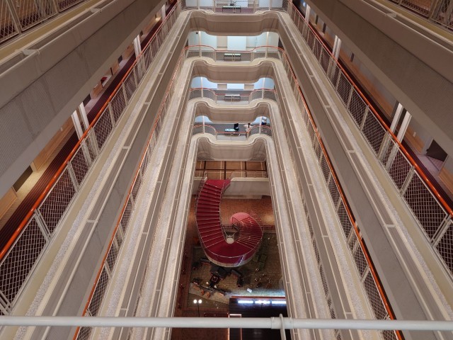 安芸グランドホテルは中が大きな吹き抜けになっていて、写真は会議の様子を5Fから撮影したものです。