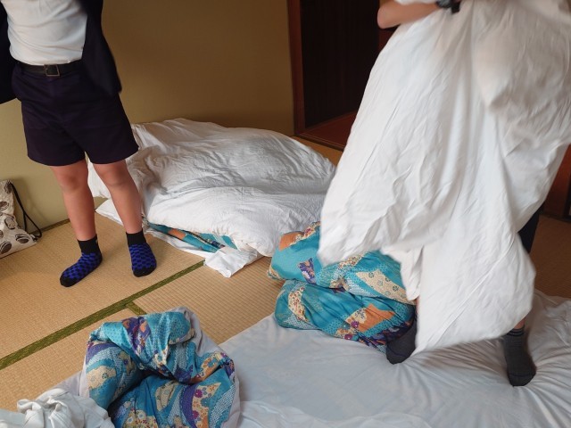 例年、6時起床なのに早く起きる子がいて、5時過ぎから部屋が騒がしくなることがあり、「まだ寝たい子がいるので静かにしなさい」と注意することが多いのですが、今年の6年生は6時になり、先生が各部屋を起こしに行くまで、ぐっすり寝ていました。