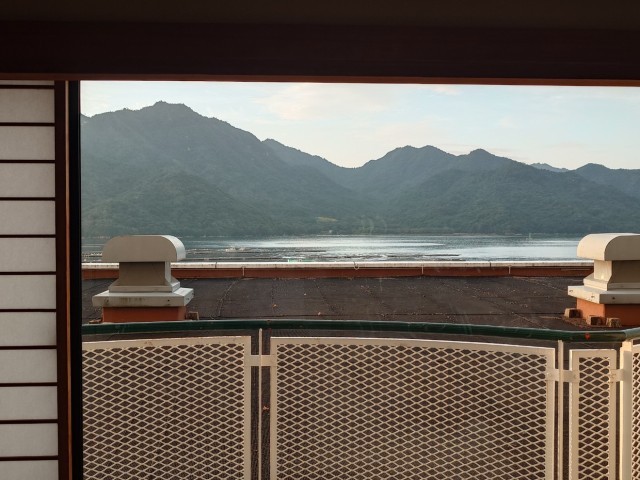 起床した時は、まだ暗かった景色ですが、朝の準備を整える頃には、きれいな海が見えるほど明るくなりました。